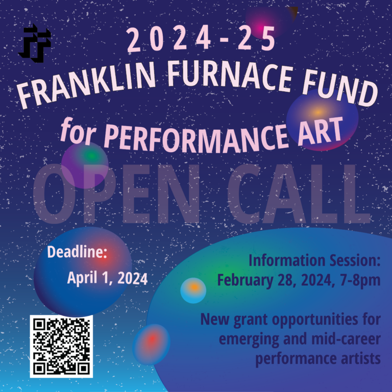 Interested in being one of our 2024-2025 Franklin Furnace FUND for Performance Art Recipients? For this info session, we were joined by multidisciplinary artist, Franklin FUND Recipient and 2023-24 FUND panelist Amy Khoshbin, Franklin Furnace Ken Dewey Director Harley Spiller and Program Manager Xinan Helen Ran.