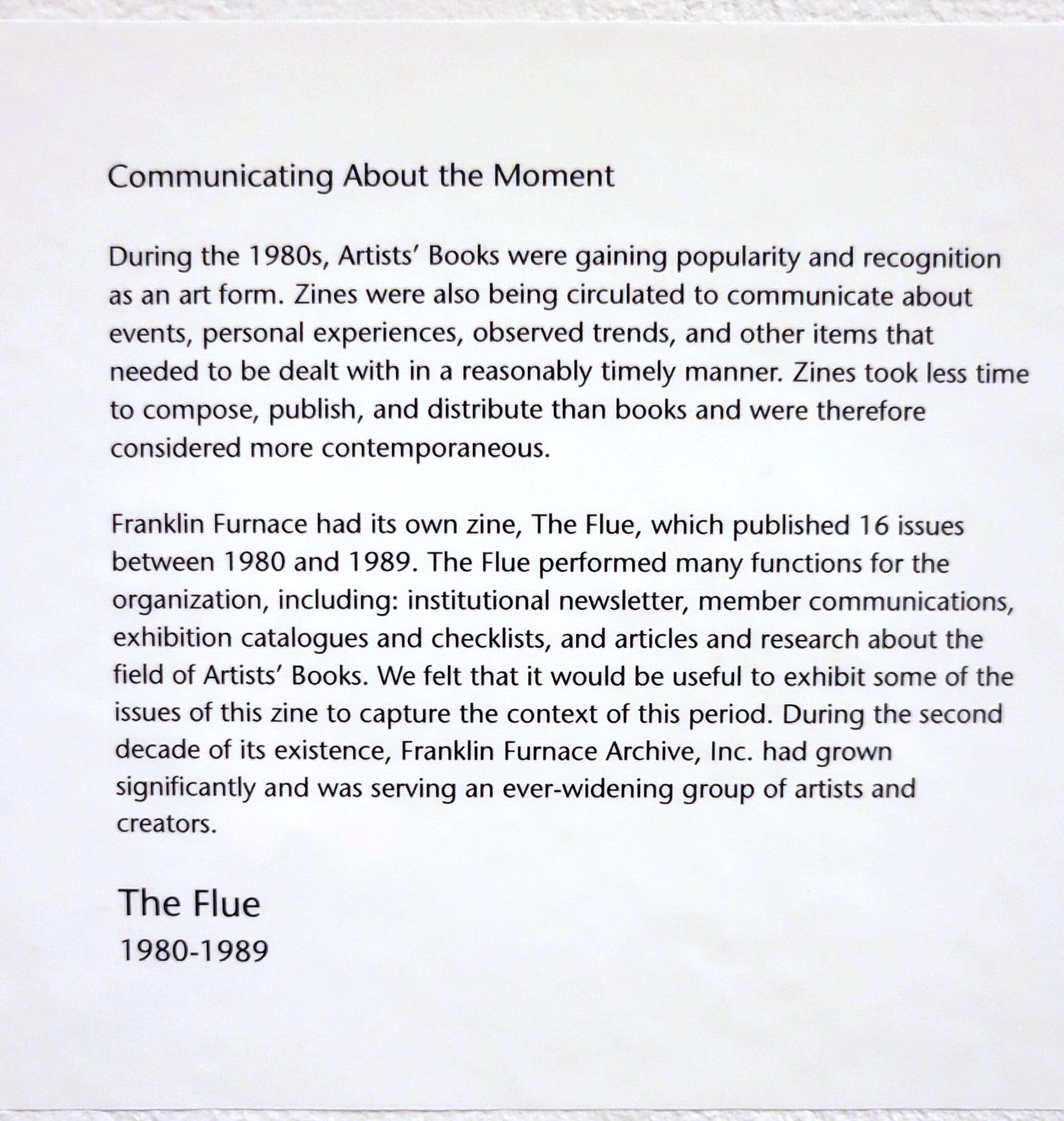 Franklin Furnace has been a pioneer among organizations that support and promote avant-garde artists working in new and nontraditional mediums. While Franklin Furnace’s current programming focuses on conceptual and performance art, the organization was originally conceived, in 1976, to serve artists who were creating artists’ books. These books were, at the time, a new and somewhat controversial line of creative inquiry.