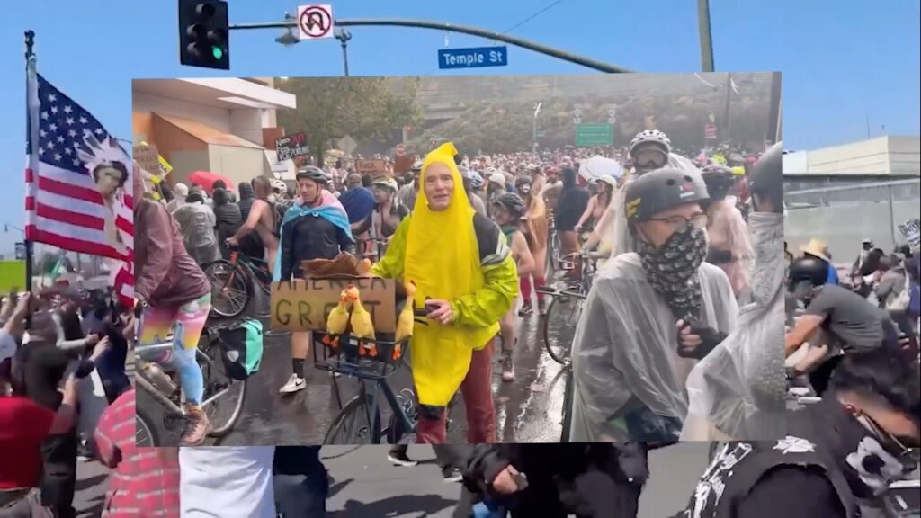 Of Ice(age), a 24-minute video remediation of ICE depredations, garnered from entrenched reporters witnessing it live. There is a soundtrack from the composers Space Time Solutions and a mashup of footage from Alcatraz Island, resistance at farms, cities, inflatable costumes, and hardware store parking lots.