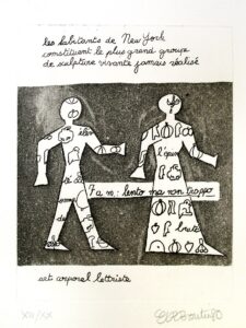 Gérard Philippe Broutin: Les habitants de New-York, 7 am : lento ma non troppo (art corporel), 1980, gravure sur Arches, ca cm 30 x 20 numérotée de I à XX.