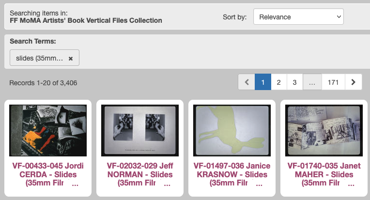 All 25,365 items in this collection will be displayed together when you enter the online database without any search criteria. You can use the five sections on the side bar to filter the collection: folder name, creator, folder type, date and item category. Every data entry in each section is clickable, and will show results related to the data/ term. To exit the search, simply hit the cross icon on the search term, and you can see all of the item records again.